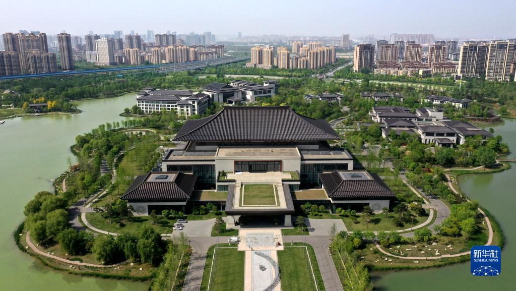 位于西安浐灞生態(tài)區的西安國際會(huì )議中心(4月16日攝,無(wú)人機照片)。