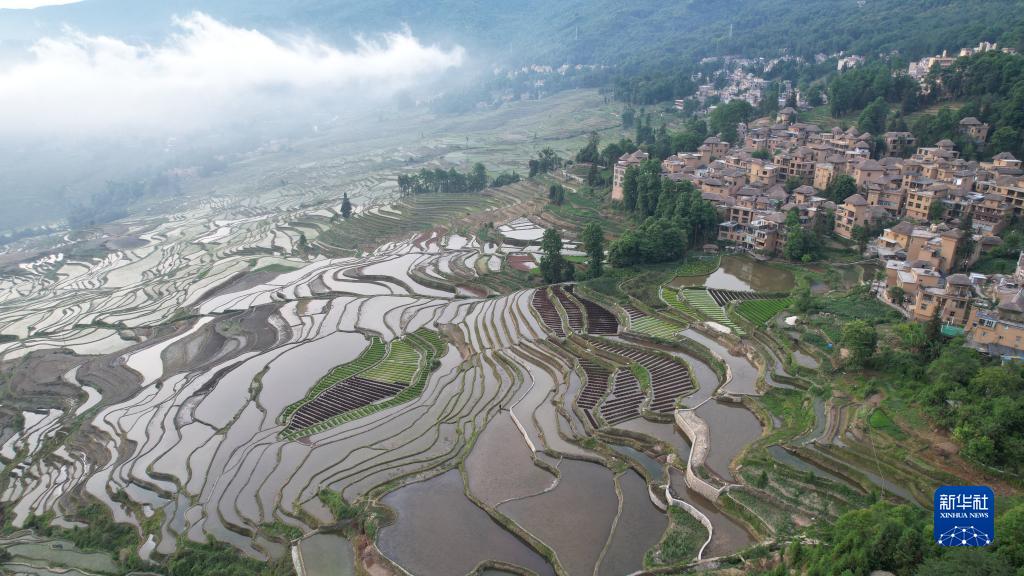 這是5月8日拍攝的元陽(yáng)哈尼梯田核心區的多依樹(shù)梯田(無(wú)人機照片)。