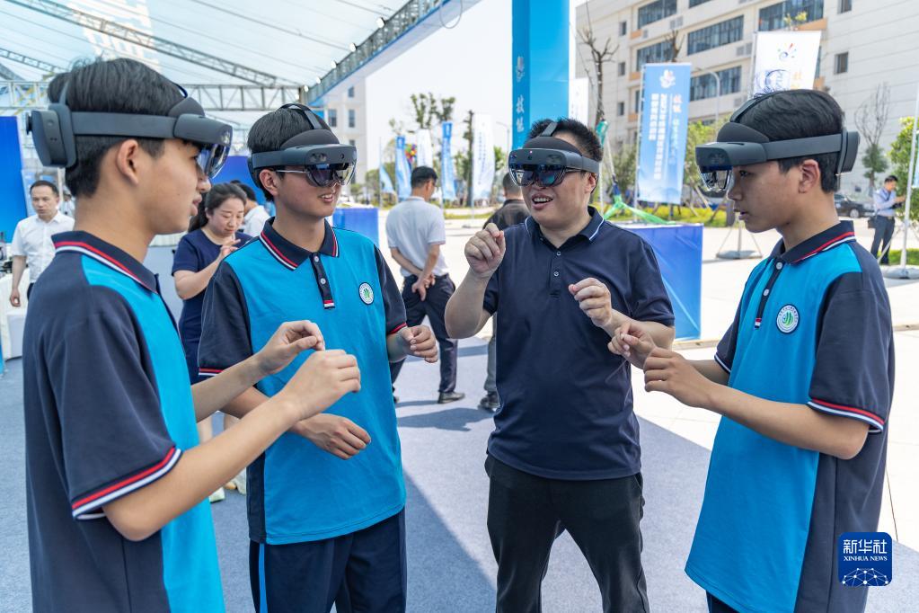5月17日,在重慶市永川區舉行的2023年成渝地區雙城經(jīng)濟圈職業(yè)教育活動(dòng)周辦學(xué)成果展上,重慶永川職教中心師生在現場(chǎng)展示MR教學(xué)輔助系統。