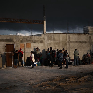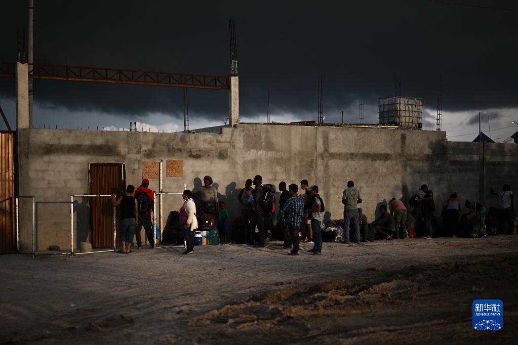 5月16日,移民在美墨邊境城市墨西哥雷諾薩的一處收容所外等待進(jìn)入。