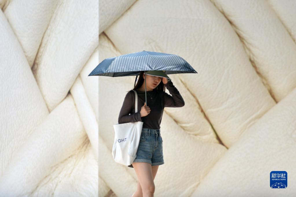 5月17日,行人在泰國曼谷街頭用傘遮陽(yáng)。