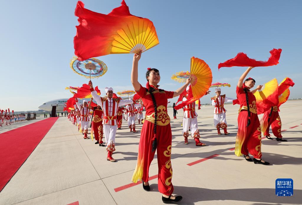 5月18日上午,出席中國-中亞峰會(huì )的土庫曼斯坦總統別爾德穆哈梅多夫抵達陜西省西安市。這是歡迎儀式現場(chǎng)。