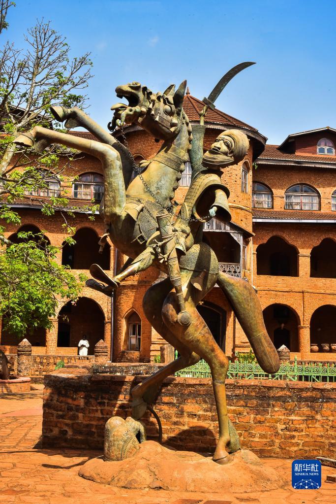 這是4月12日在喀麥隆西部大區豐班拍攝的巴蒙王宮外的騎兵塑像。