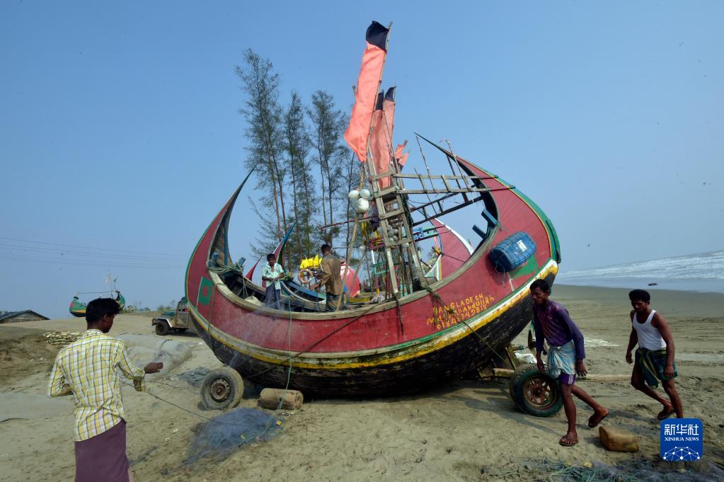 5月15日,在孟加拉國南部科克斯巴扎爾,熱帶氣旋“穆查”經(jīng)過(guò)之后,漁民回到海灘上整理漁船為出海捕魚(yú)做準備。