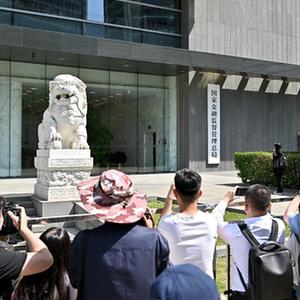 5月18日,媒體記者在國家金融監督管理總局門(mén)前拍攝。