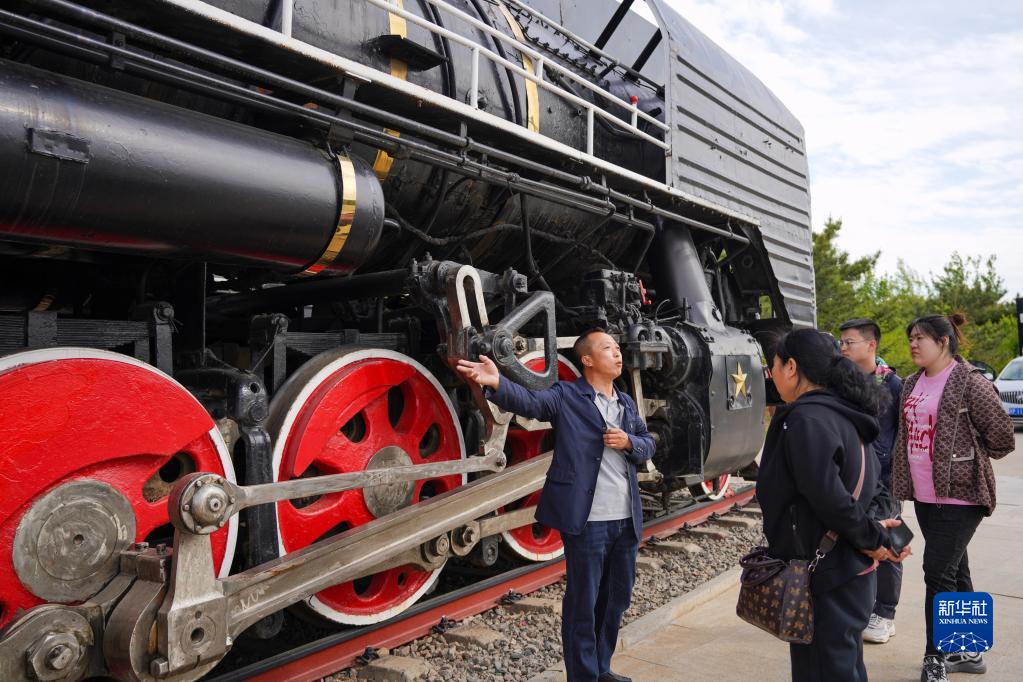 5月17日,中國鐵路沈陽(yáng)局集團有限公司白城機務(wù)段工作人員向游客進(jìn)行講解。