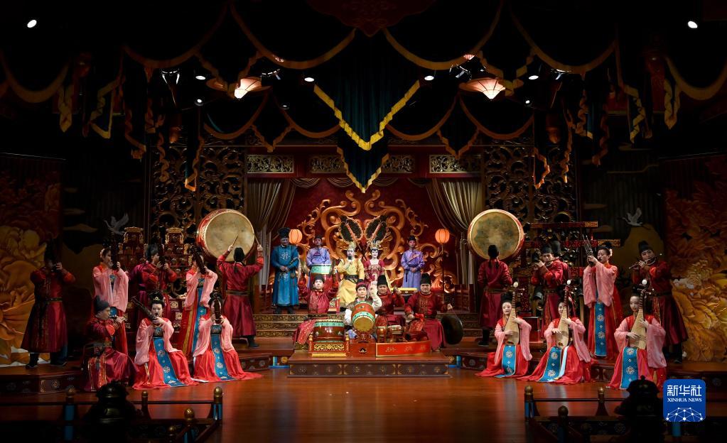 位于陜西西安城南的大唐芙蓉園,是在唐代芙蓉園遺址以北、仿照唐代皇家園林式樣重建的一座全方位展示盛唐風(fēng)貌的大型文化主題遺址公園。園內紫云樓館橋飛渡,彩霞亭煙波浮動(dòng),望春閣亭亭玉立……漫步其間,隨處可見(jiàn)身著(zhù)古裝的游客攜親友同行,在流動(dòng)的光影之間,恍若穿越千年。水舞燈光秀《大唐追夢(mèng)》、歌舞劇《夢(mèng)回大唐》、宮廷燕樂(lè )《鼓》等創(chuàng )新演藝也讓唐風(fēng)國韻在此散發(fā)經(jīng)久不衰的藝術(shù)魅力。