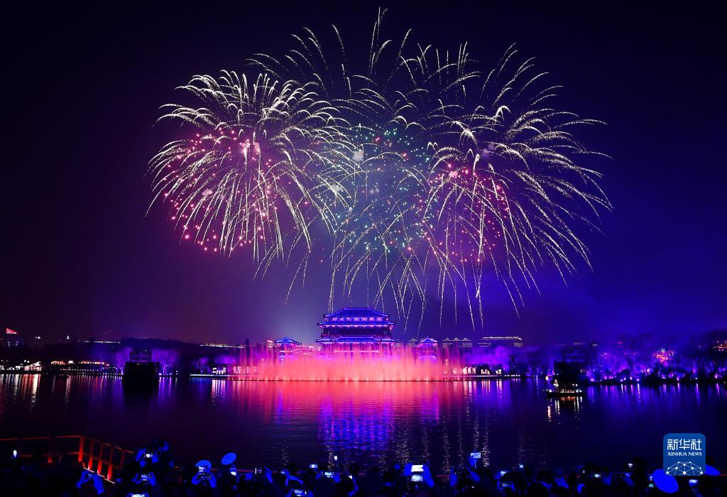 西安大唐芙蓉園2023年元宵節煙花晚會(huì )(2月5日攝)。
