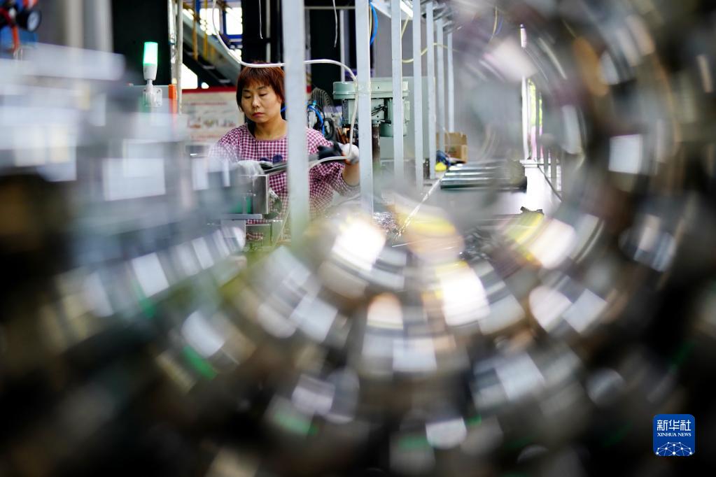 5月18日,河北省平鄉縣一家打氣筒生產(chǎn)企業(yè)的工人在組裝打氣筒。