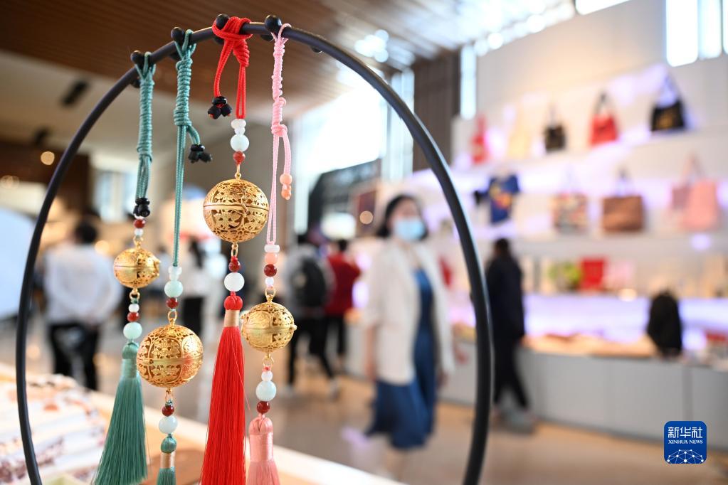 這是國博文創(chuàng )體驗區擺放的香囊(5月18日攝)。