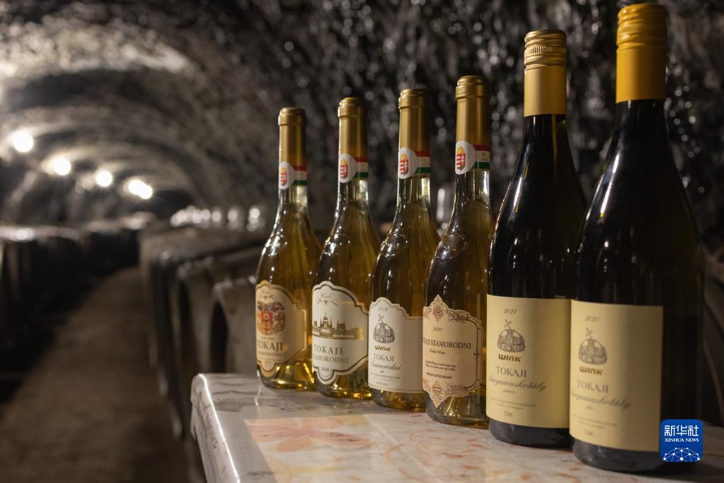 這是5月11日在匈牙利托卡伊鮑比茨酒莊的酒窖內拍攝的葡萄酒。