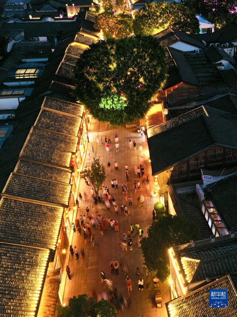 這是5月18日拍攝的福州三坊七巷歷史文化街區夜景(無(wú)人機照片)。新華社記者 姜克紅 攝