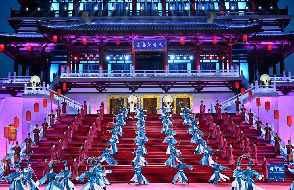 5月18日晚,出席中國-中亞峰會(huì )的中亞國家元首夫婦陸續抵達陜西省西安市大唐芙蓉園,參加在這里舉行的歡迎儀式。這是演員在歡迎儀式上表演。新華社記者 申宏 攝