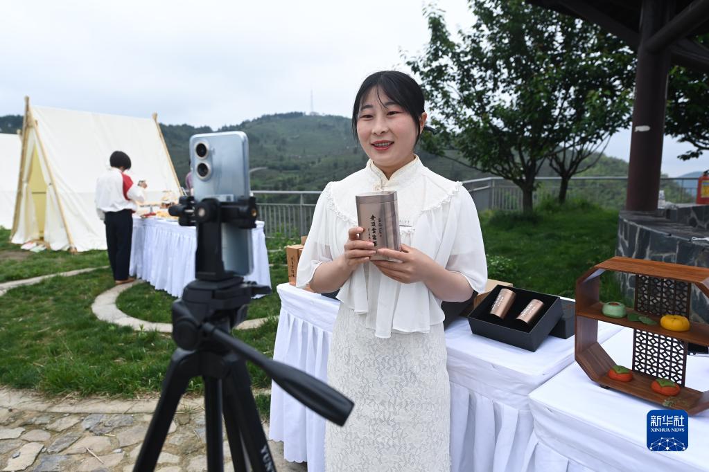 5月19日,杭州市富陽(yáng)區里山鎮的青創(chuàng )人才通過(guò)直播的方式推薦當地土特產(chǎn)。