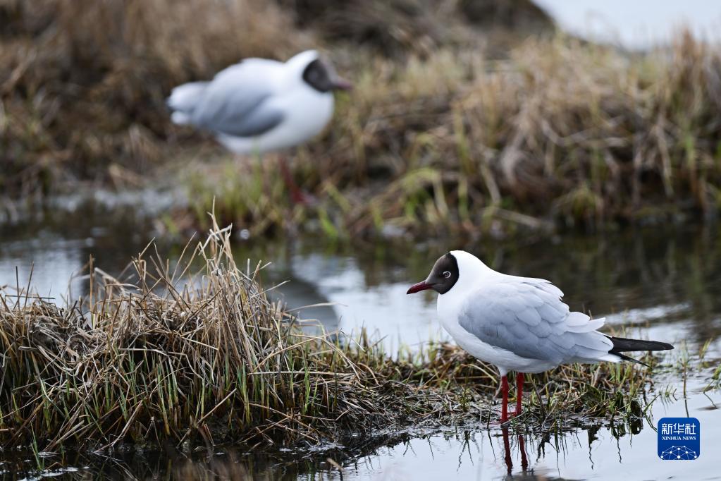 這是5月17日在青海省海北藏族自治州剛察縣境內的青海湖仙女灣景區拍攝的棕頭鷗。