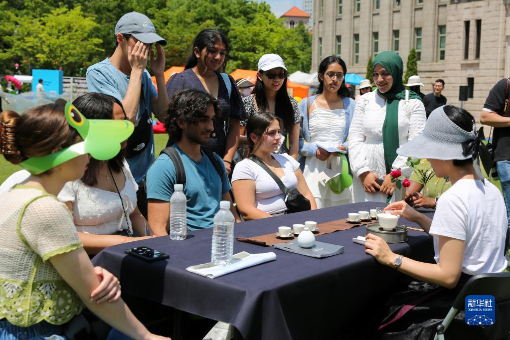 5月19日,人們在韓國首爾廣場(chǎng)品嘗中國茶。
