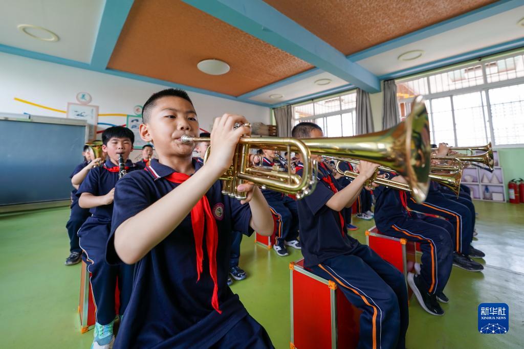 5月19日,河北省灤南縣第一實(shí)驗小學(xué)銅管樂(lè )器社團的學(xué)生在排練。