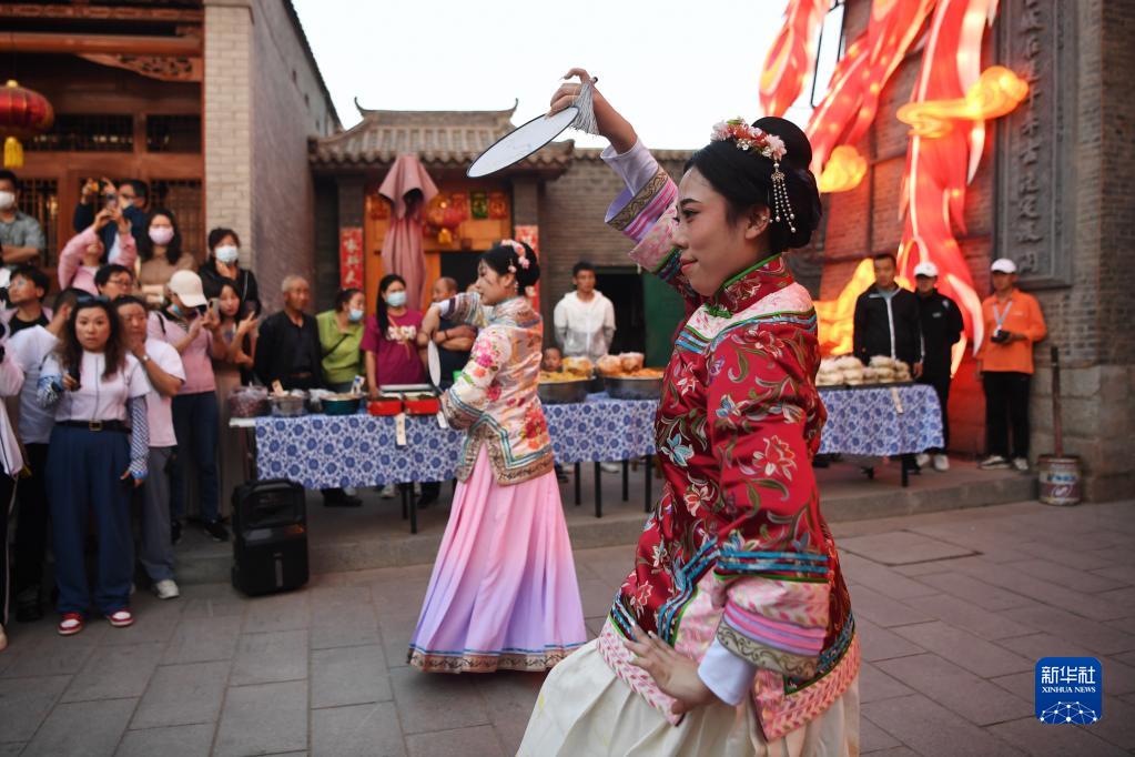 5月19日,演員在河口古鎮“黃河燈展”上演出。
