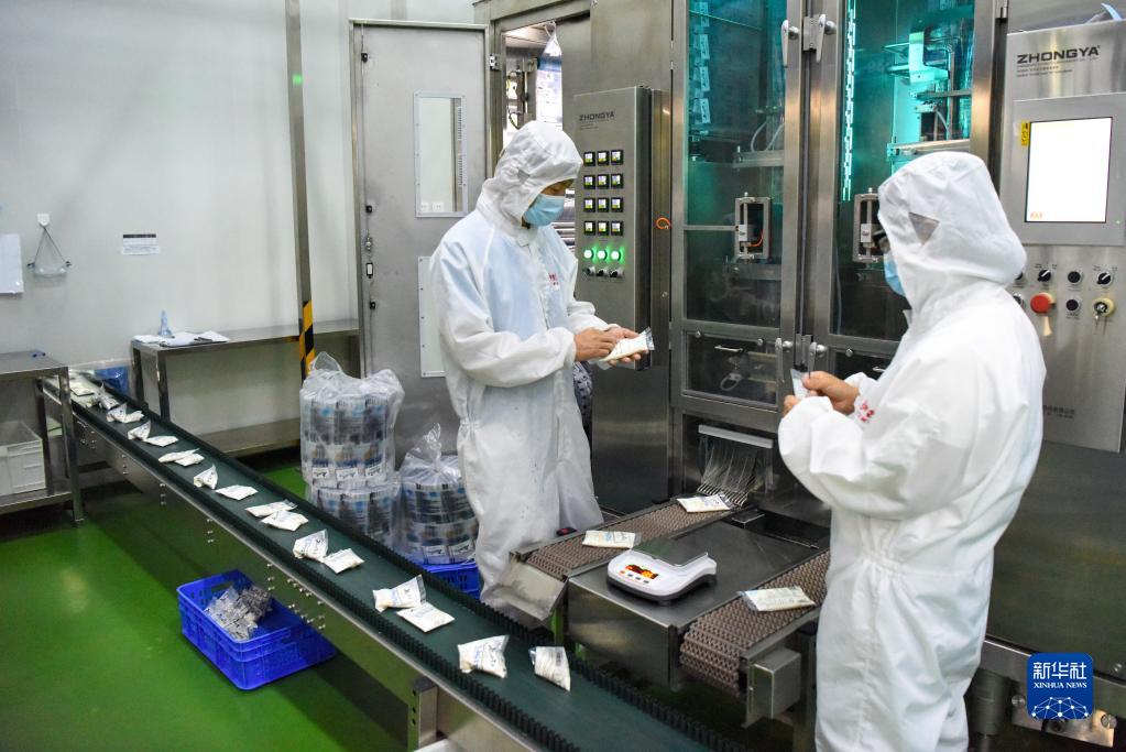 在位于新疆伊寧市的伊犁伊牧欣乳業(yè)有限公司,工人在生產(chǎn)線(xiàn)上忙碌(5月19日攝)。