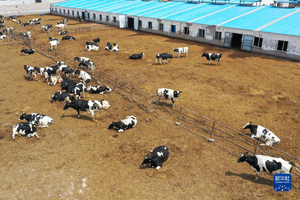 這是在新疆伊寧市巴彥岱鎮奶牛養殖場(chǎng)拍攝的飼養的奶牛(5月19日攝,無(wú)人機照片)。
