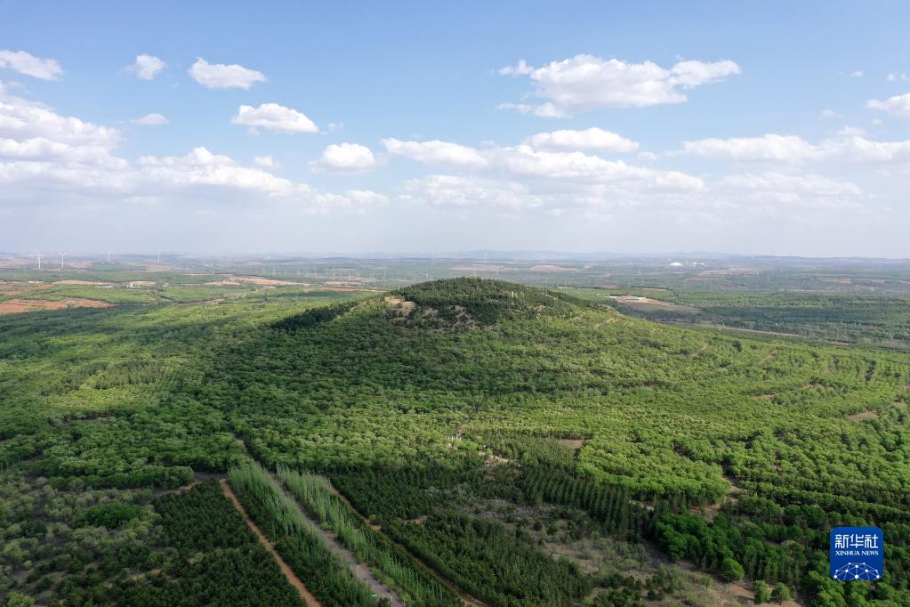 山西省右玉縣南山森林公園一角(5月18日攝,無(wú)人機照片)。