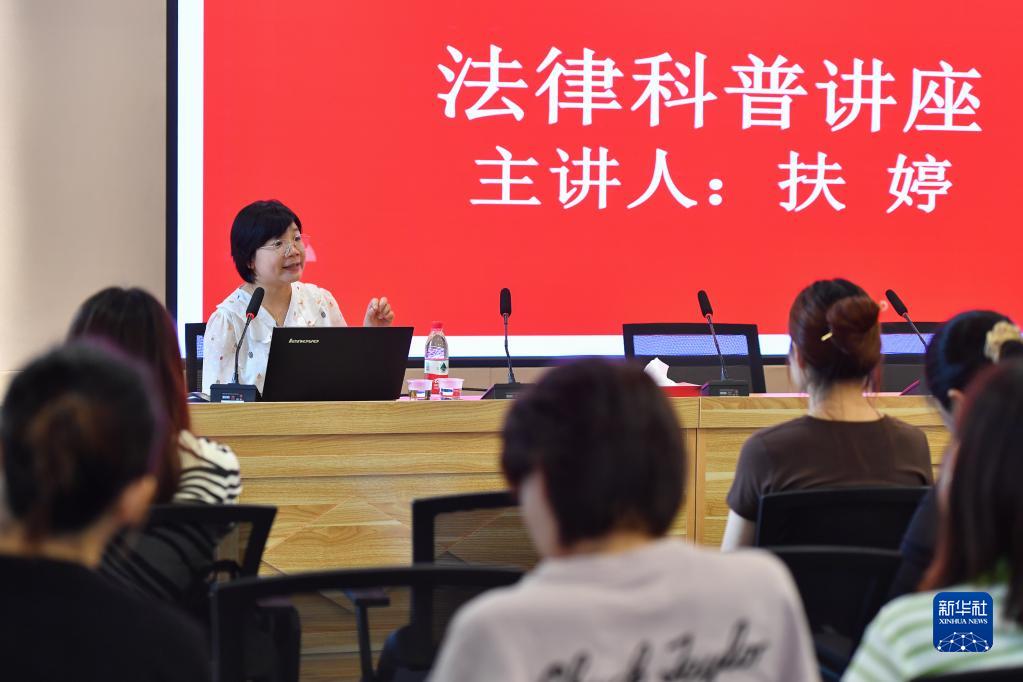 在湘潭市雨湖區廣場(chǎng)街道和平社區,扶婷為居民開(kāi)展法律科普講座(5月19日攝)。