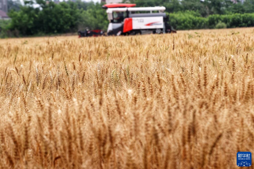 5月20日,在浙江省湖州市德清縣雷甸鎮解放村,農民駕駛收割機收獲小麥。