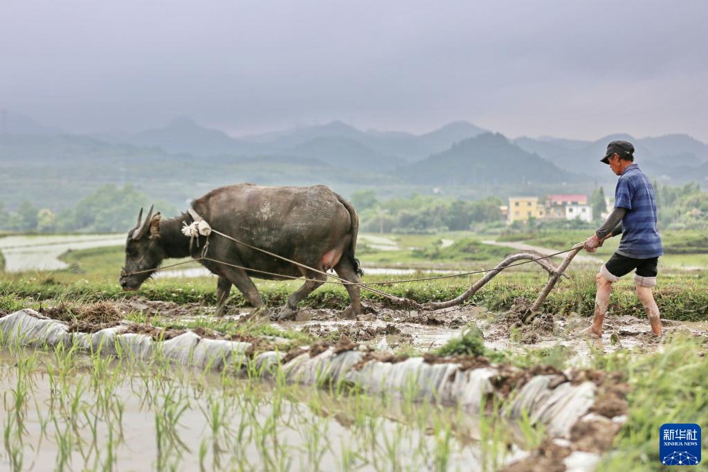 5月20日,貴州省貴陽(yáng)市花溪區高坡鄉擺龍村村民在耕田。