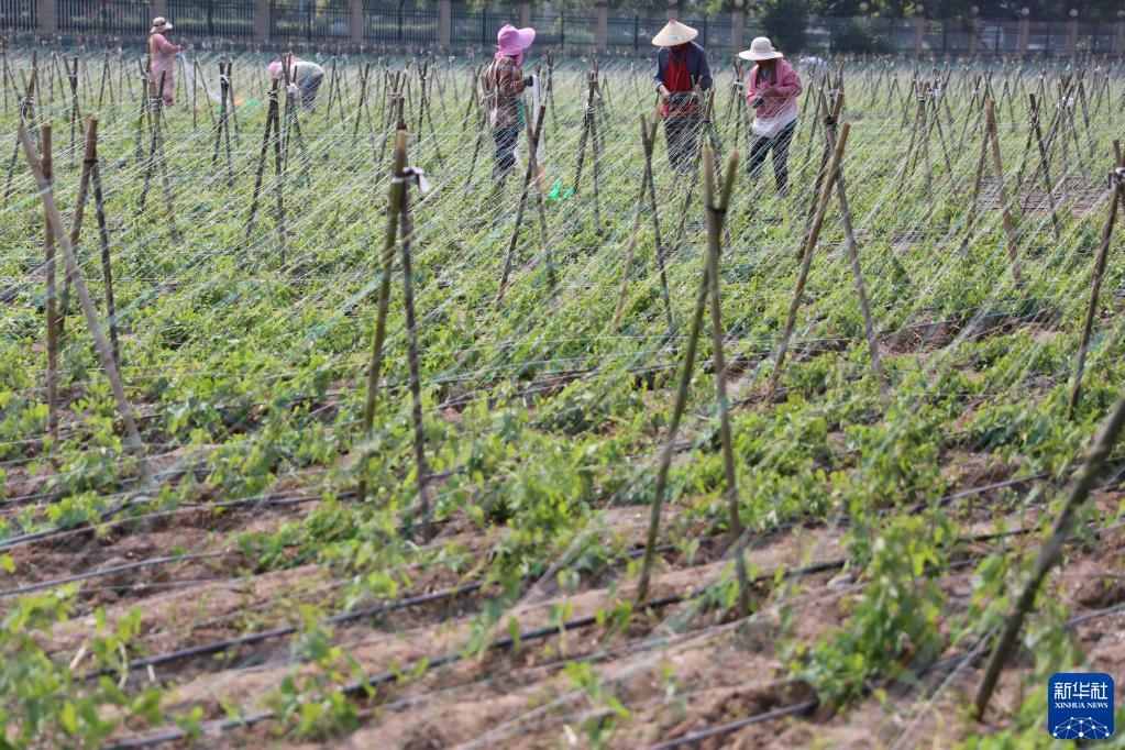 5月20日,河南省焦作市溫縣黃莊鎮牛林肇村村民在田間管理懷山藥。