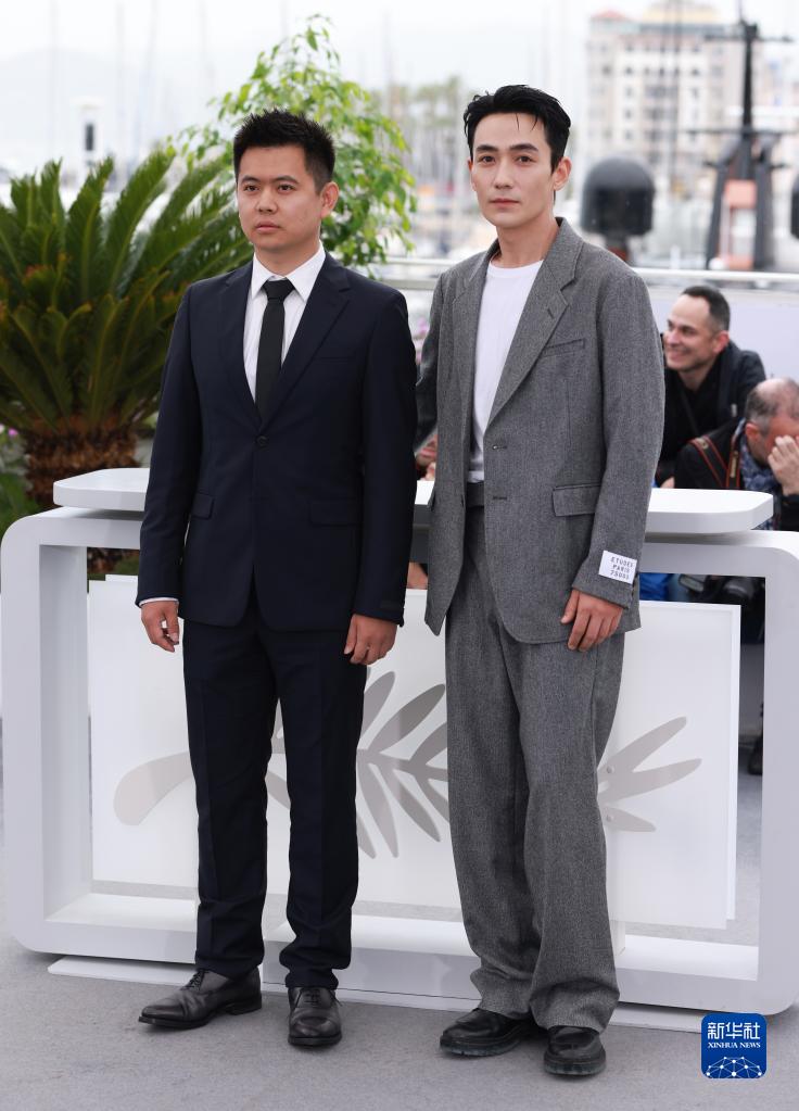 5月20日,在法國戛納舉行的第76屆戛納國際電影節上,中國導演魏書(shū)鈞(左)和演員朱一龍亮相影片《河邊的錯誤》拍照式。