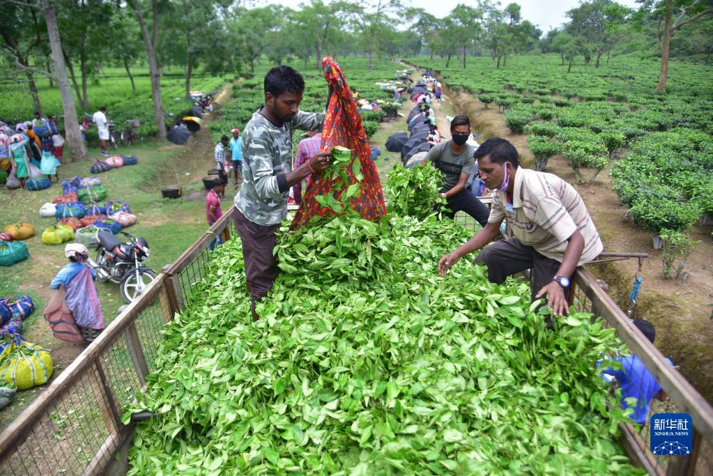 這是2021年6月1日,工人在印度阿薩姆邦納加奧恩地區的茶園里收獲茶葉。