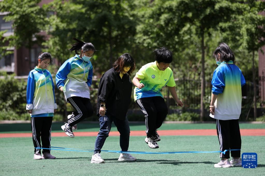 5月18日,午休時(shí)間,莊巖帶著(zhù)學(xué)生在操場(chǎng)上跳皮筋,這項普通的運動(dòng)對于視障孩子來(lái)說(shuō)是非常有挑戰性的,也是鍛煉孩子感知和定位能力的一項好運動(dòng)。