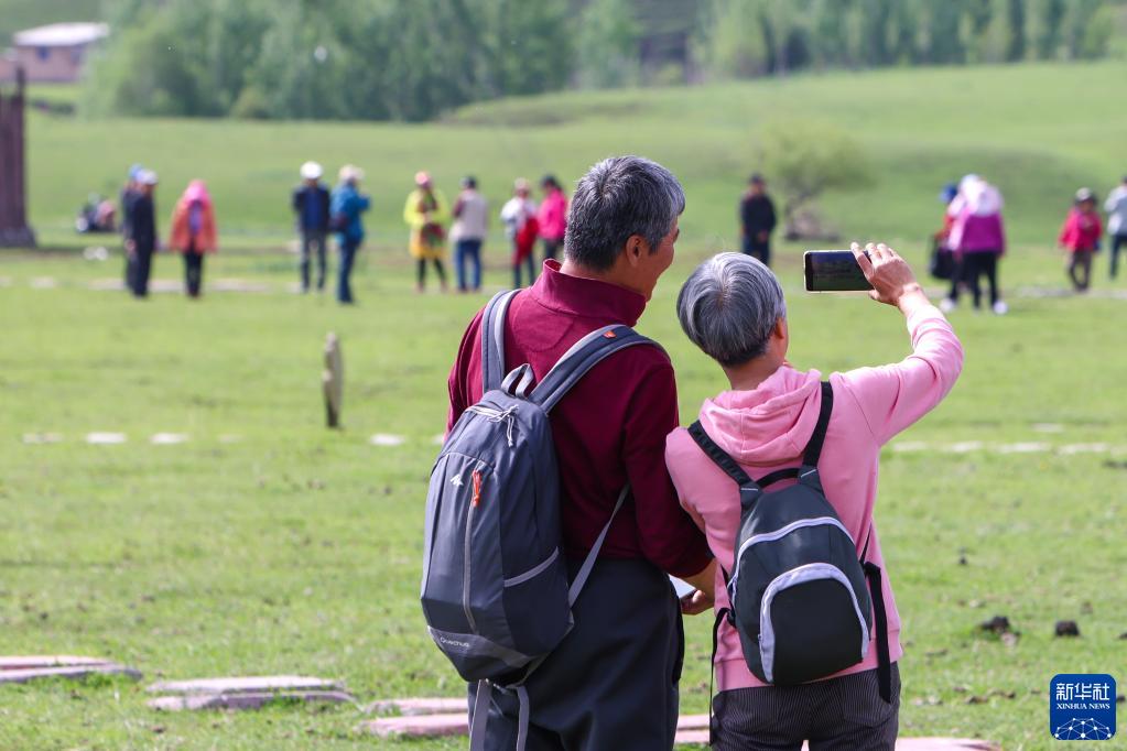 5月20日,游客在位于新疆新源縣的那拉提旅游風(fēng)景區自拍留影。