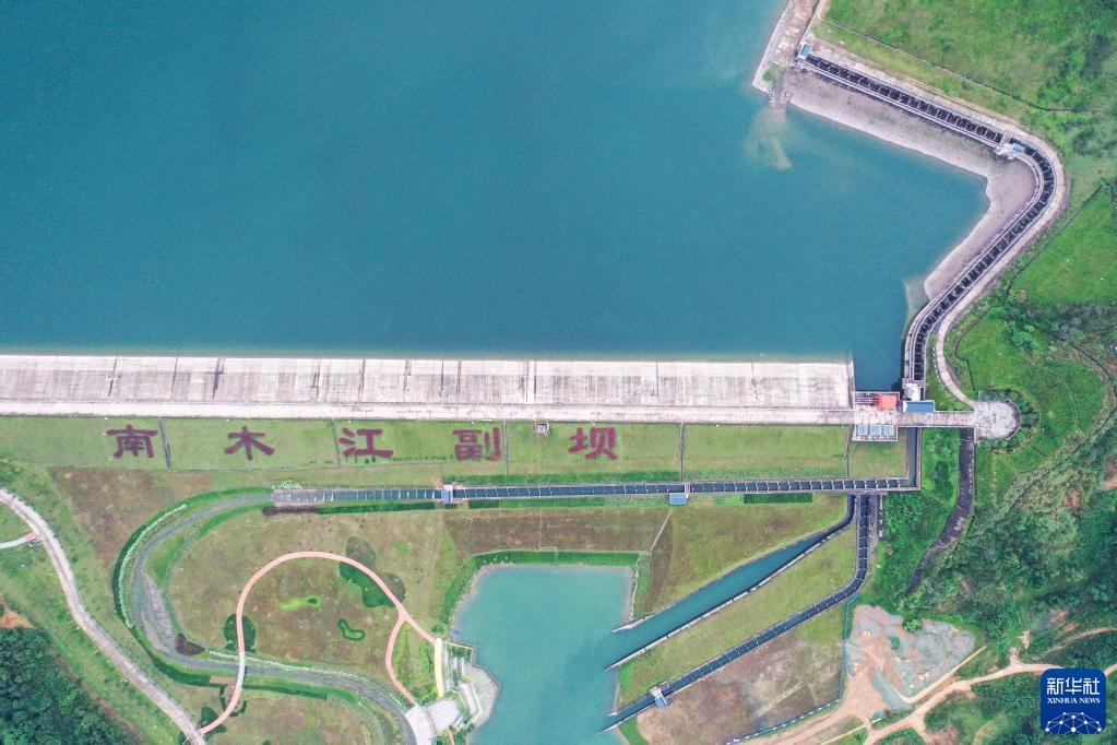 這是5月20日拍攝的廣西大藤峽水利樞紐工程南木江副壩仿自然生態(tài)魚(yú)道(無(wú)人機照片)。