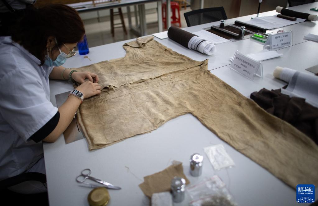 5月20日,在荊州文物保護中心,修復人員劉一丹修復一件南宋紡織品。