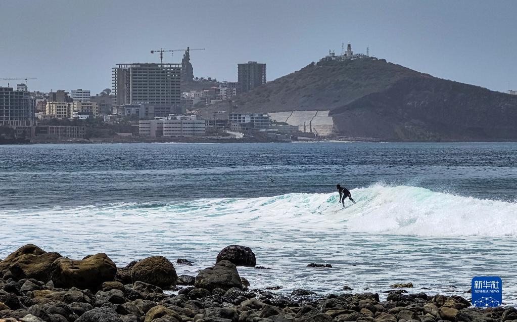 5月14日,一名沖浪愛(ài)好者在塞內加爾首都達喀爾的海邊沖浪。