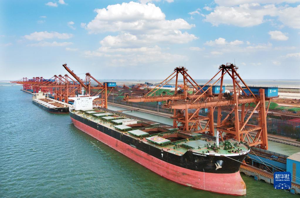 貨輪??吭跍嬷蔹S驊港綜合港區(2021年8月25日攝,無(wú)人機照片)。