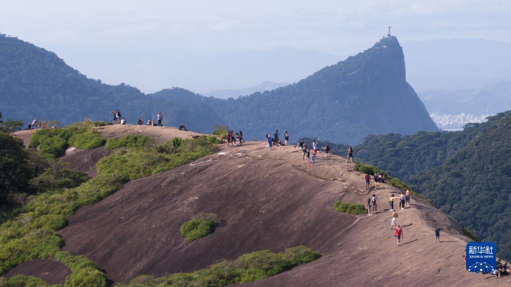 5月21日,游客在巴西里約熱內盧蒂茹卡國家公園游覽(無(wú)人機照片)。