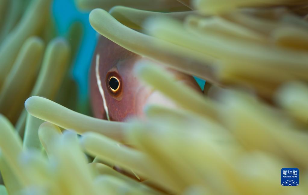 這是在蜈支洲島海域海洋牧場(chǎng)拍攝的藏在??械男〕篝~(yú)(2021年5月23日攝)。