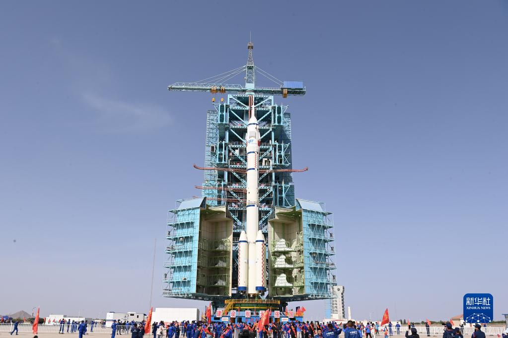 5月22日,神舟十六號載人飛船與長(cháng)征二號F遙十六運載火箭組合體轉運至發(fā)射塔架。