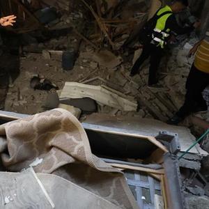 5月22日,在約旦河西岸城市納布盧斯,人們查看沖突中損毀的房屋。
