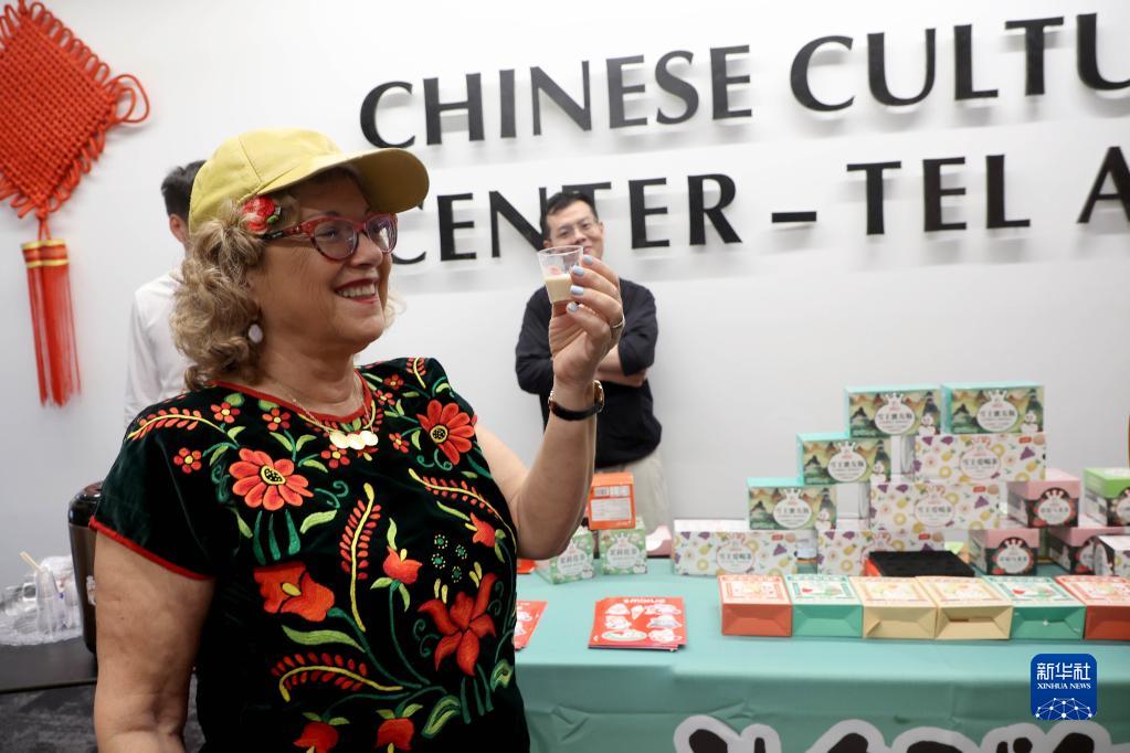 5月21日,一名參觀(guān)者在以色列特拉維夫中國文化中心“茶和天下·雅集——美在鄭州”推廣活動(dòng)上品茶。