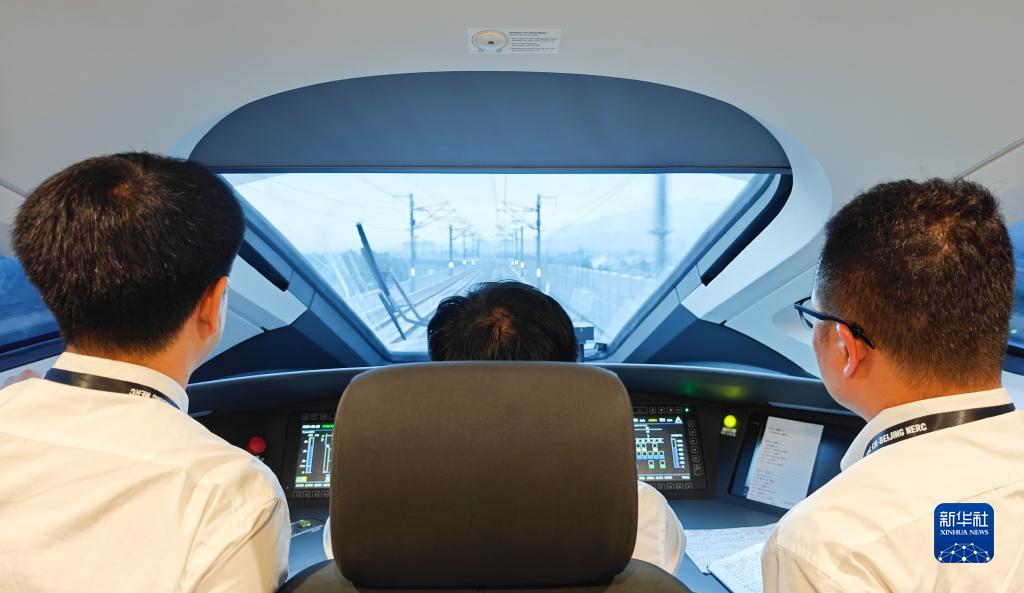 5月22日,在印度尼西亞,動(dòng)車(chē)組司機駕駛雅萬(wàn)高鐵綜合檢測列車(chē)行駛在雅萬(wàn)高鐵沿線(xiàn)(手機照片)。