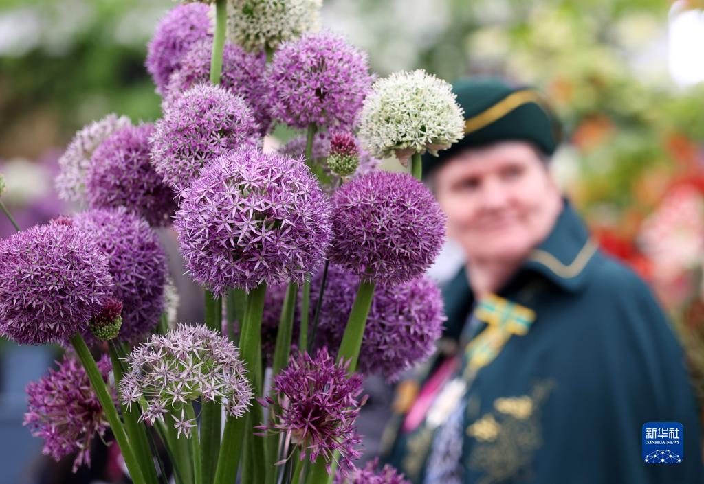 5月22日,一名工作人員在英國倫敦參加切爾西花展媒體日。