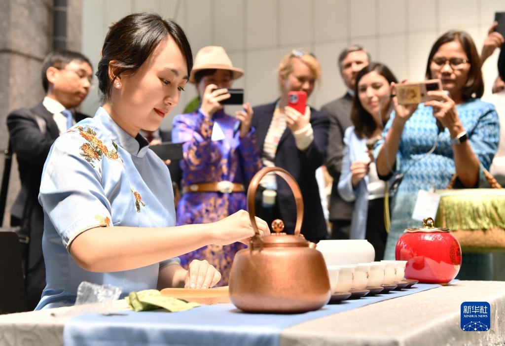 5月22日,在意大利羅馬的聯(lián)合國糧農組織總部,福建安溪鐵觀(guān)音茶文化系統的代表表演茶藝。