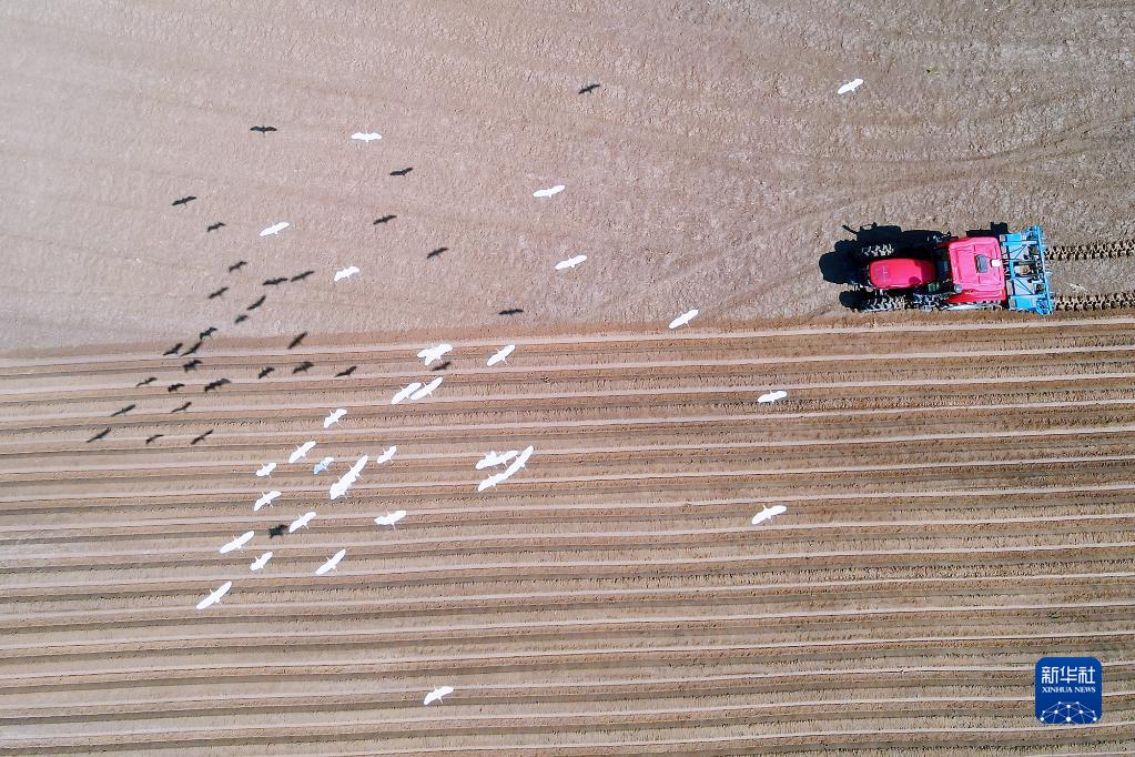 初夏時(shí)節,江蘇省如皋市磨頭鎮天陽(yáng)社區農田里,農機在田野間往來(lái)穿梭,成群的白鷺在翻耕的土地上覓食、嬉戲,構成一幅美麗的生態(tài)畫(huà)卷。