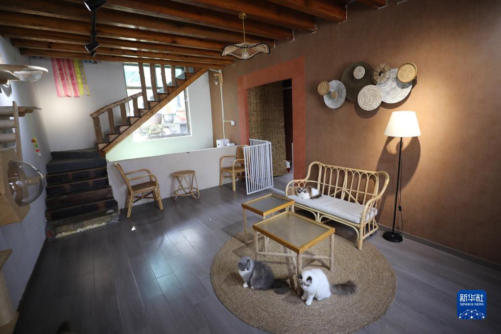 5月23日在浙江省義烏市李祖村拍攝的貓咖“貓的小院”內景。