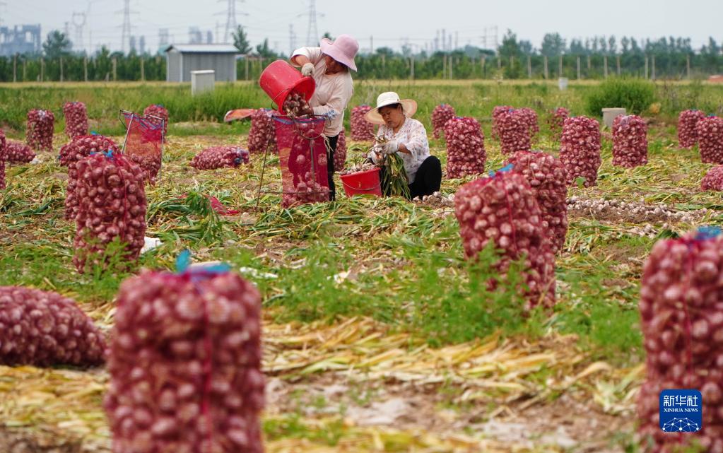 近日,山東省巨野縣農戶(hù)種植的大蒜進(jìn)入收獲期。近年來(lái),巨野縣建立高標準大蒜種植基地35萬(wàn)畝,建設大蒜倉儲冷庫500余座,大蒜已成為助力當地農民致富的主要特色產(chǎn)業(yè)。