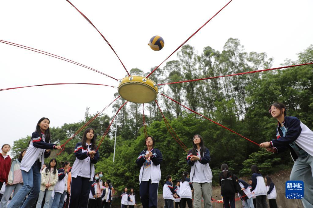 5月23日,四川省廣安市武勝中學(xué)高三學(xué)生開(kāi)展“同心擊鼓”心理調適趣味游戲活動(dòng)。