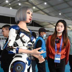 5月24日,機器人在峰會(huì )現場(chǎng)為觀(guān)眾講解介紹。